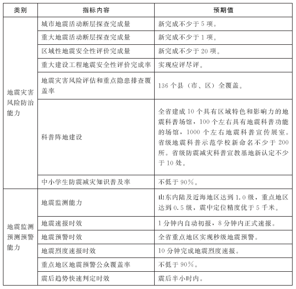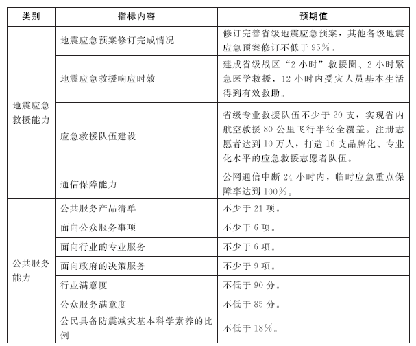 “十四五”时期防震减灾事业发展主要指标