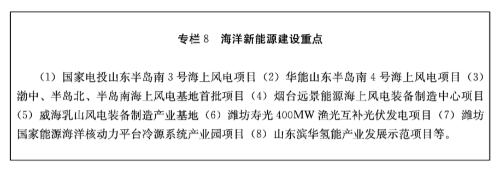 4.海洋新能源。加强海洋能资源高效利用技术装备研发和工程示范,支持海上风电、潮汐能等海洋能规模化、商业化发展,打造海洋新能源示范引领高地。按照统筹规划、分步实施原则,谋划推进海上风电基地建设,聚焦渤中、半岛北、半岛南三大片区,推进海上风电集中连片、深水远岸开发应用示范,打造千万千瓦级海上风电基地和千亿级山东半岛海洋风电装备制造产业基地。加强关键核心技术独立创新、联合创新,实现风电装备生产本地化、高端化,打造“立足山东,辐射沿海”集研发设计、智能制造、工程总承包、运维服务等于一体的风电装备产业集群。探索推进“海上风电+海洋牧场”、海上风电与海洋能综合利用等新技术、新模式,积极推广“渔光互补”模式,支持海洋清洁能源与海水淡化、深远海养殖、海洋观测等融合发展。探索开展多种能源集成的海上“能源岛”建设。(省发展改革委、省能源局、省海洋局按职责分工负责)