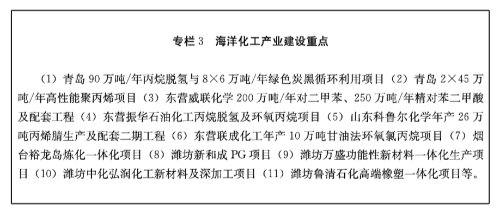 3.海洋化工。优化海洋化工产业布局和产品结构,延伸海洋化工产业链,加大技术改造升级力度,打造绿色、集聚、高端海洋化工产业基地。发展精细盐化工,拉长以溴素为原料的阻燃材料、药用中间体等产业链条,打造高端盐化工产业基地。加快研发海水化学资源和卤水资源综合开发利用技术,扩大海水提取钾、溴、镁等系列产品及其深加工品规模。支持海藻活性物质国家重点实验室等工程化开发平台建设,加快发展海藻化工产业。高标准、高质量建设裕龙岛炼化一体化项目,打造世界级高端石化产业基地。(省工业和信息化厅牵头,省科技厅配合)