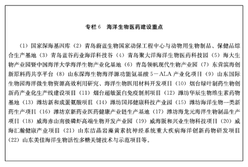 2.海洋生物医药。发挥海洋生物资源和科研人才优势,创新发展模式,推进海洋生物医药产业集聚发展,打造国内领先、世界一流的海洋生物医药产业集群。到2025年,力争取得5个海洋新药及创新医疗器械证书、10个临床研究批件,系列海洋生物功能制品形成显著规模和经济效益。